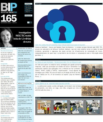 A edição do boletim de novembro do INESC TEC já está disponível em: http://bip.inesctec.pt/165. Principais temas em destaque: