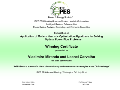 The competition challenged teams from all over the world to develop solutions for a set of specific and difficult problems which occur when operating electric power systems. The participants were required to use meta-heuristic techniques, involving discrete and continuous quantities in a nonlinear environment. The theme of the competition was the problem known as OPF (optimal power flow), which is key to modern safety and to the energy efficiency of power grid operation. To solve the exercise, the researchers used the Evolutionary Particle Swarm Optimization (EPSO) technique, employing an algorithm that was originally developed at INESC TEC by Vladimiro Miranda, addressed in a paper that was published as part of IEEE’s 2002 World Conference on Computational Intelligence. The algorithm has been progressively improved since then.